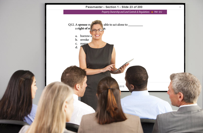 Get StartedOffers slides with 700 questions, answers and explanations which help Students train to both memorize and learn why questions have specific answers. Passing the state exam requires repetition, recognition and understanding...